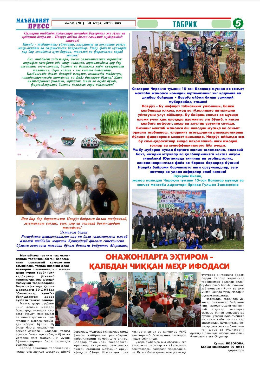 Chiroqchi tumani madaniyat markazida 8-mart Xalqaro xotin qizlar bayrami boʻlib oʻtdi